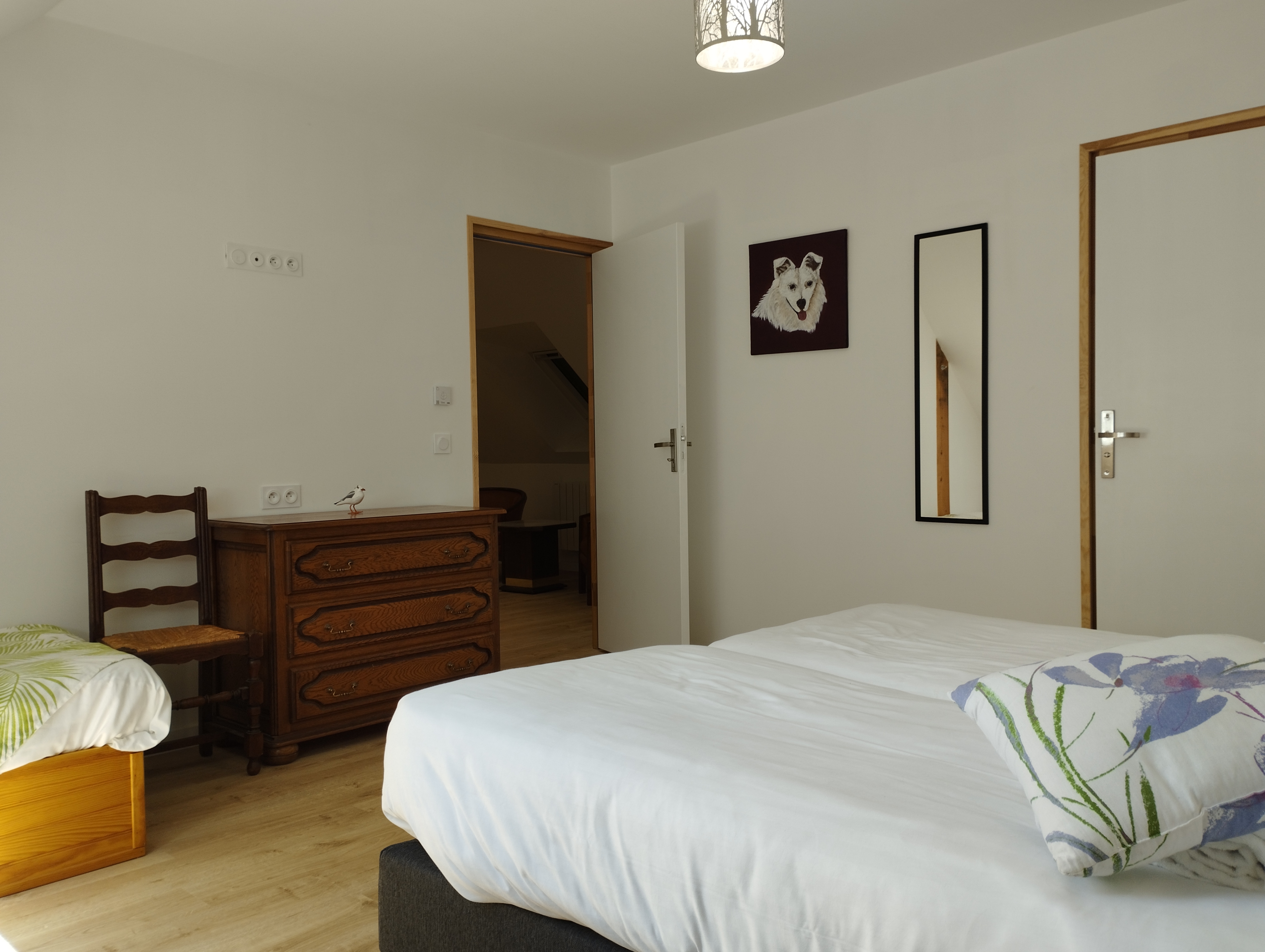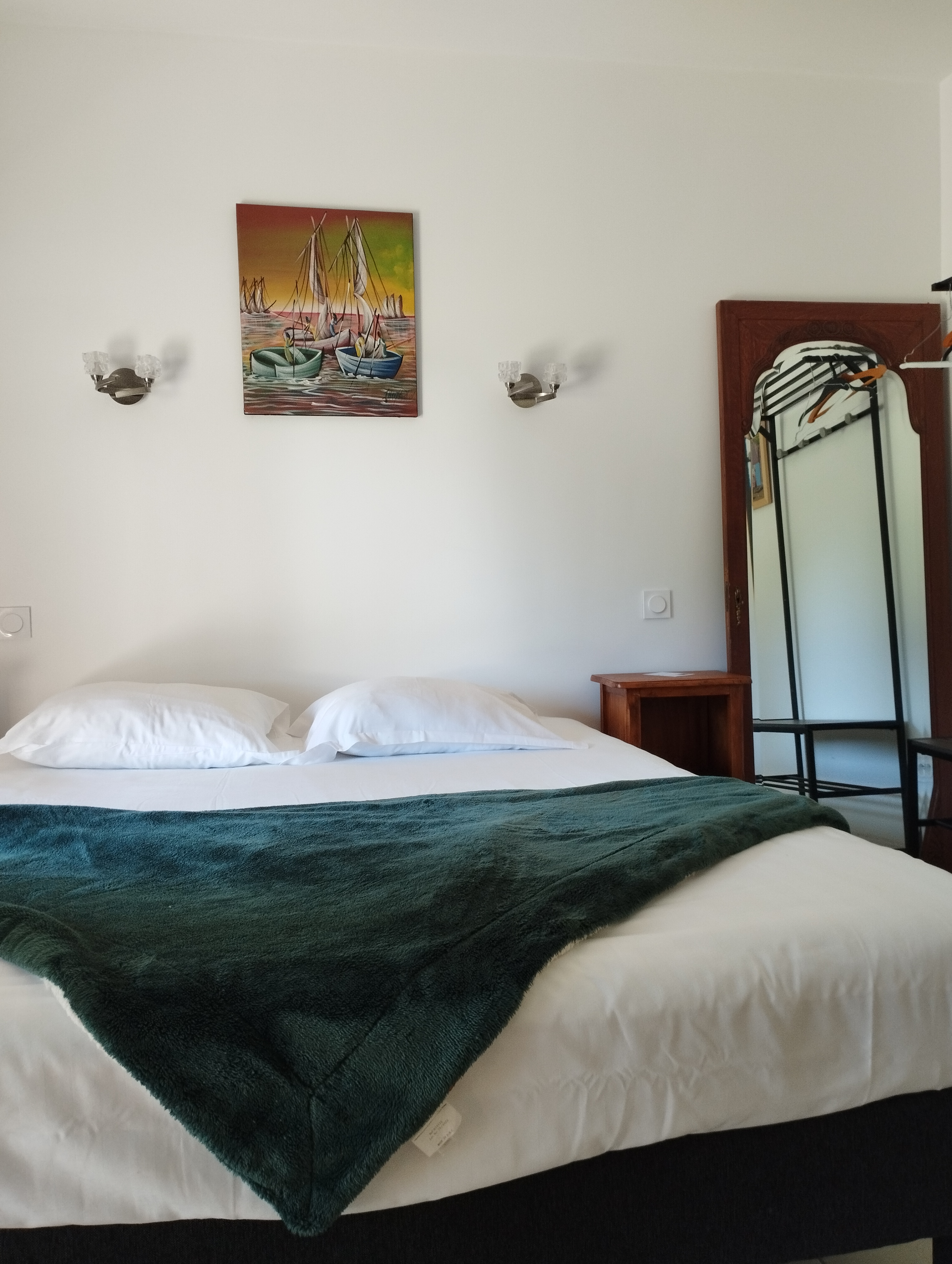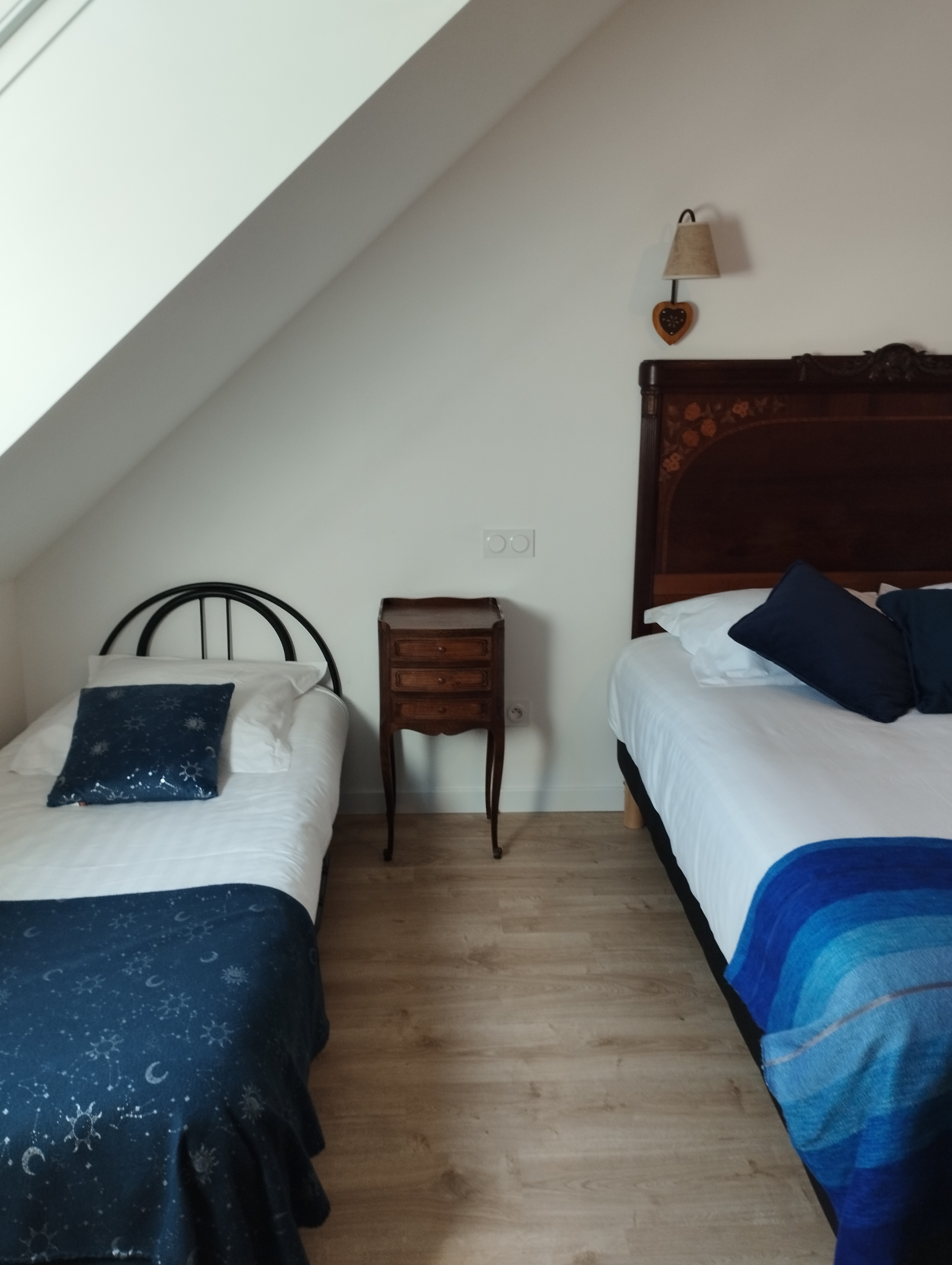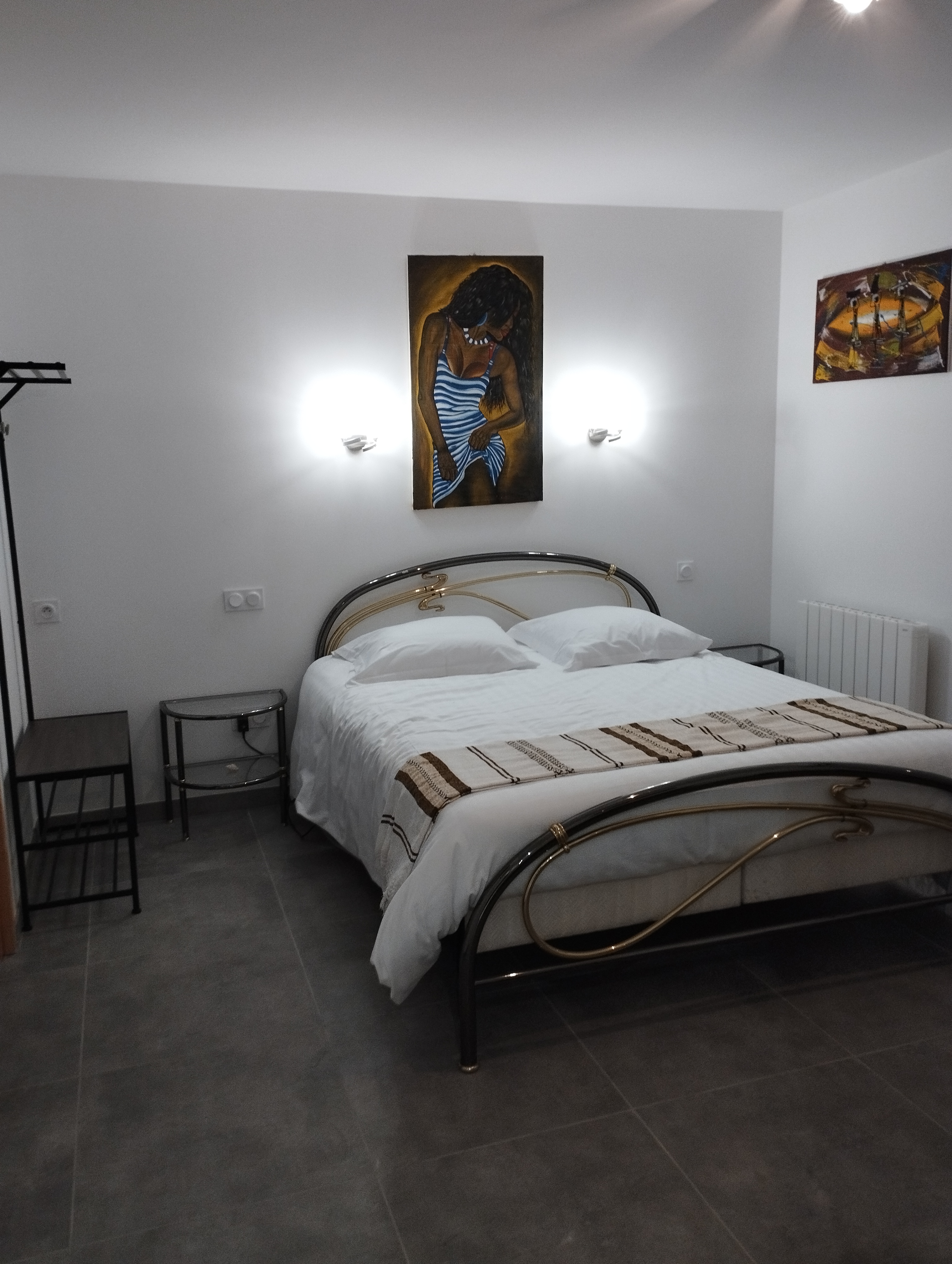 Cette chambre chaleureuse, inspirée d’une douce ambiance espagnole, offre deux lits séparés, idéale pour accueillir des amis, des enfants ou une petite famille. Une touche d’âme et d’authenticité : un tableau peint avec amour par ma petite-fille orne le mur, ajoutant une note personnelle et pleine de tendress.